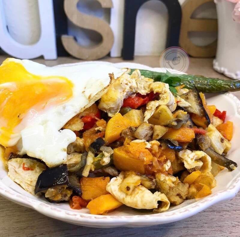 Dans la même huile faites chacun leur tours, l’aubergine, les pommes de terre, la courge ou butternut, les 4 œufs battues.