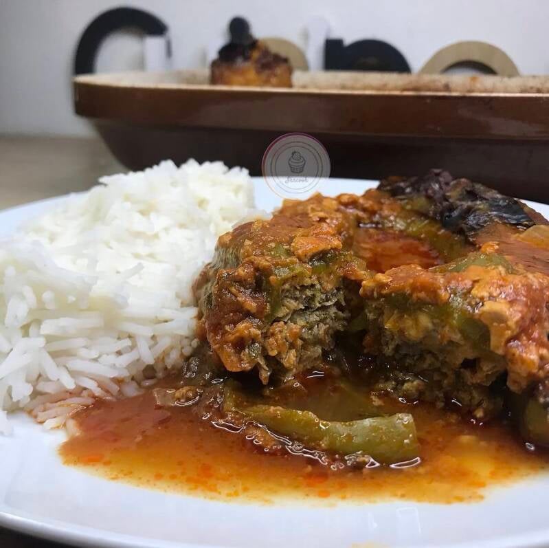 Trop envie de felfel mehchi, en plus j’avais dans mon frigo dés poivrons en rab. Et un peu de viande hachée au congélateur.