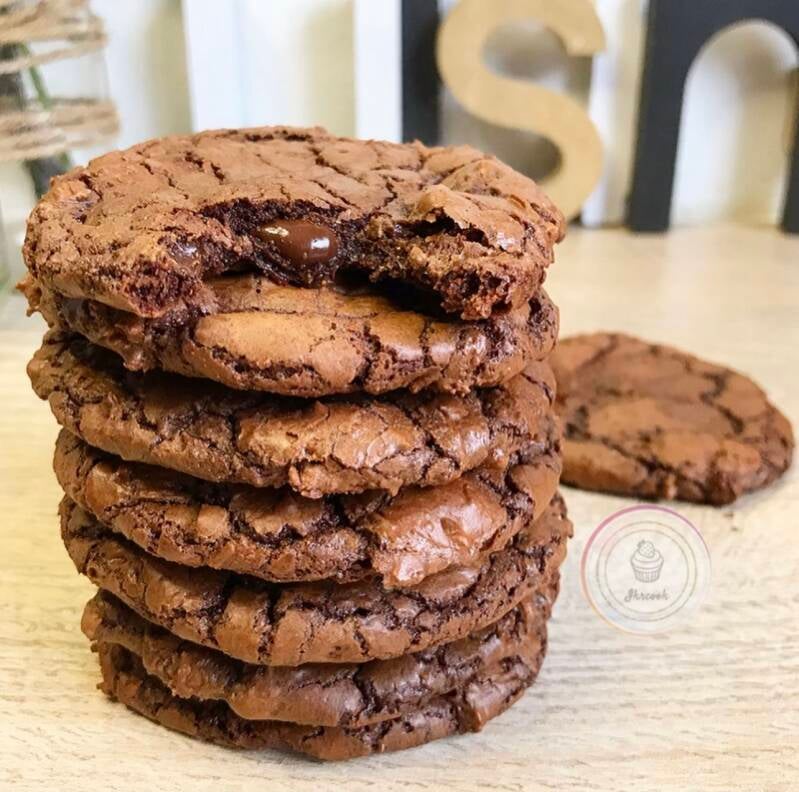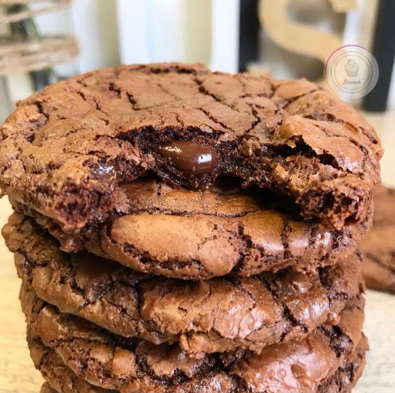 Disposez des pépites de chocolat sur le dessus puis enfournez à 160 degrés pendant 12 minutes. C’est normal que les outrageous soit mou et fragile à la sortie du four mais laissez les refroidir quelques minutes en dehors du four ils deviendront croustillant sur le dessus.