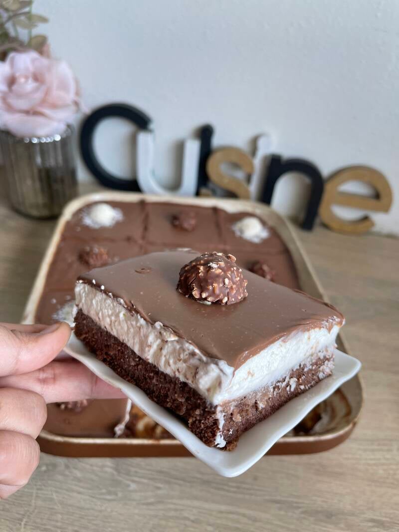Faites chauffer votre crème jusqu’à ébullition hors du feu mettez le chocolat et mélangez.