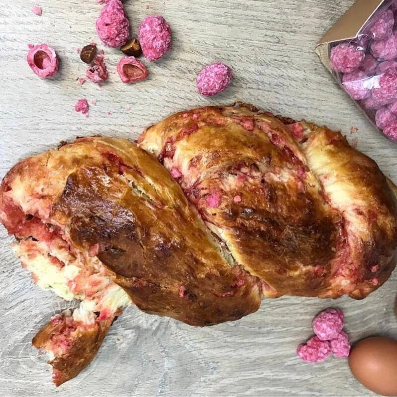 Dégazez la pâte, ajoutez les pralines concassées. Et mélangez.
